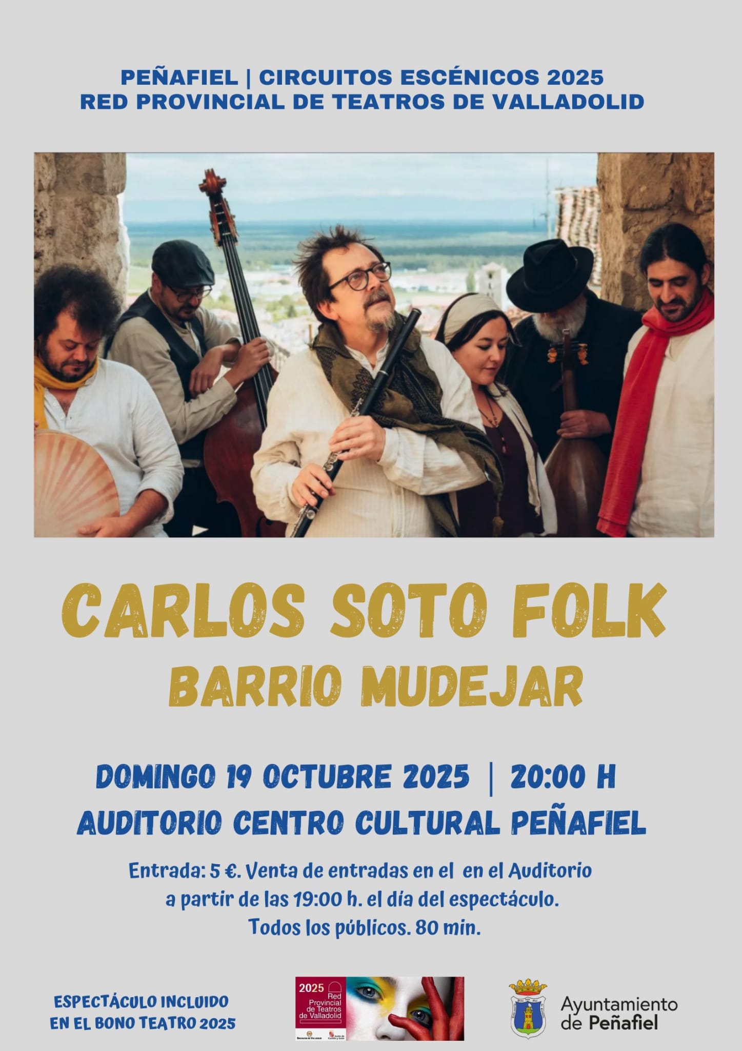 Este domingo, 19 de octubre, Peñafiel suena a folk. A las 20:00h, en el Auditorio del Centro Cultural, disfrutaremos del concierto...
