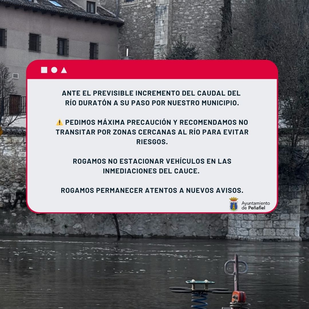 AVISO PREVENTIVO | AUMENTO DEL CAUDAL DEL RÍO DURATÓN Ante el previsible incremento del caudal del río Duratón en las próximas...